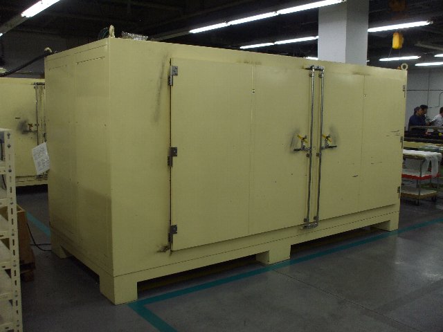 炉内:W1500×H1500×D1200mm 型式:JMB-35DPA 電源:3φ200V 25.8KVA 100A 温調器+タイマー 観音扉 外寸:W2500×H1950×D1400mm 重量:900kg 架台・ドライラック付 4台有り(2012年×2台、2008年、2004年)