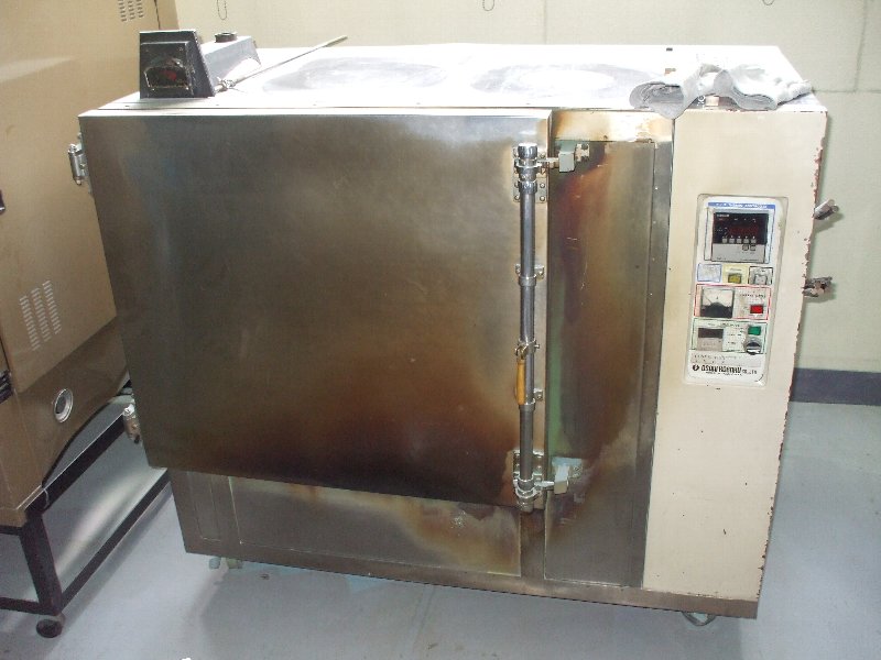 炉内寸法:W1000×H1000×D1000mm 型式:S-100S 電源:3φ200V 30A 温調計+タイマー 棚:12段