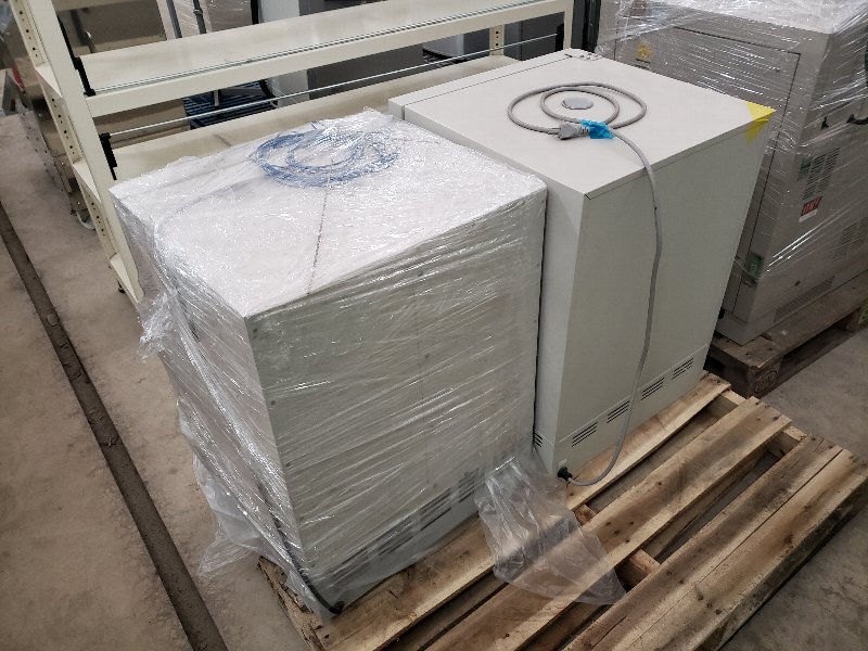 炉内寸法:W800×H800×D800mm 型式:NGDS 電源:3φ200V 25kw 100A プロコン・記録計 脱臭処理:排ガス燃焼装置(~800℃)付 炉体外寸:W1840×D1350×H2640mm 残り2台(1台売却済)
