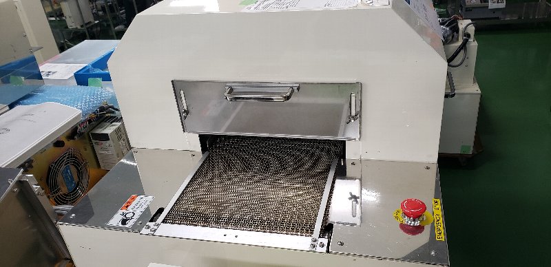 ベルト巾:120mm 有効H25mm 型式:810 電気容量:3φ200V 11kw 20A 加熱部:4ゾーン 969mm マッフル:SUS-310S冷却部:450mm 雰囲気:Dry Air 外形寸法:W530×H1355×D3000mm 重量:約500kg